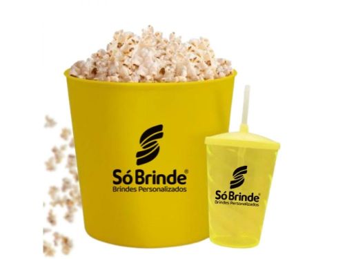 Combo Cinema em casa. Composto por 01 Balde de Pipoca 2,6L em material PP e 01 copo 500ml de Acrilico com Canudo. Gravação Silk 01 Cor