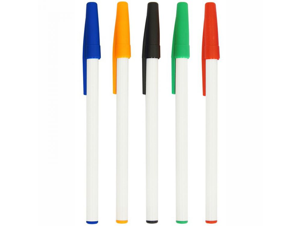 Caneta Plástica Esferográfica, com detalhe em laranja, Escrita Azul 1.0