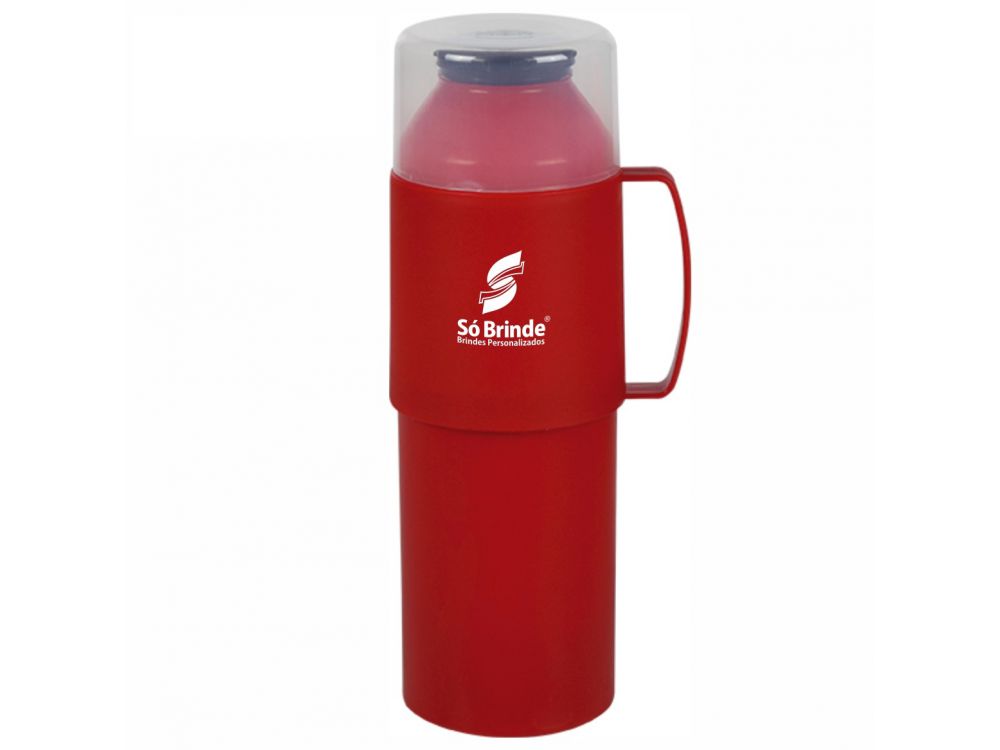 Garrafa térmica de plástico injetado, com interior de vidro. capacidade 01lt mantém líquido quente por longo periodo. Impressão 01 cor.