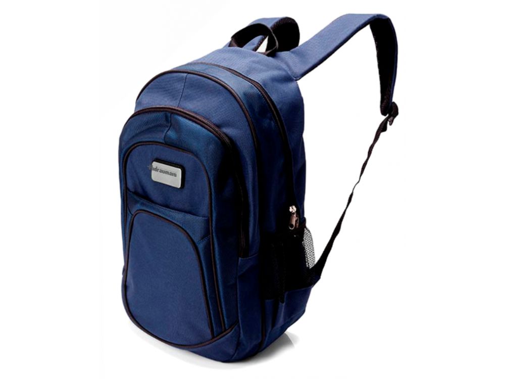 Mochila azul em Poliester 600D/1680D. Alças p/ as costas, alça para as mãos, compartimento para notebook de até 17", 3 bolsos externos com zíper e 2 bolsos externos em tela. Capacidade: 25 litros (Volume). DIMENSÃO 47x31x20cm. Gravação Laser na Chapinha.